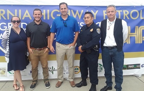 SD/Imperial Unit Members Danielle Darrin and Kyle Check with Hyundai Translead, SD/Imperial Chair Cy Mellet with Ryder Systems, Inc. and Chris Northrup with CNK Transport with CHP Officer Espirtu.