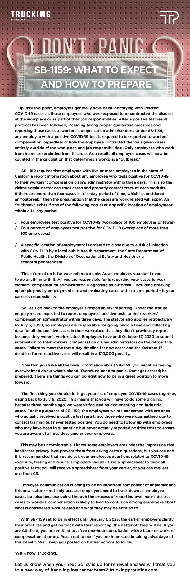 Under a new law (AB 685) that passed through the legislature this year, employers that learn of potential COVID-19 exposures in the workplace must notify employees within one business day and report COVID-19 workplace outbreaks to local health agencies within 48 hours.