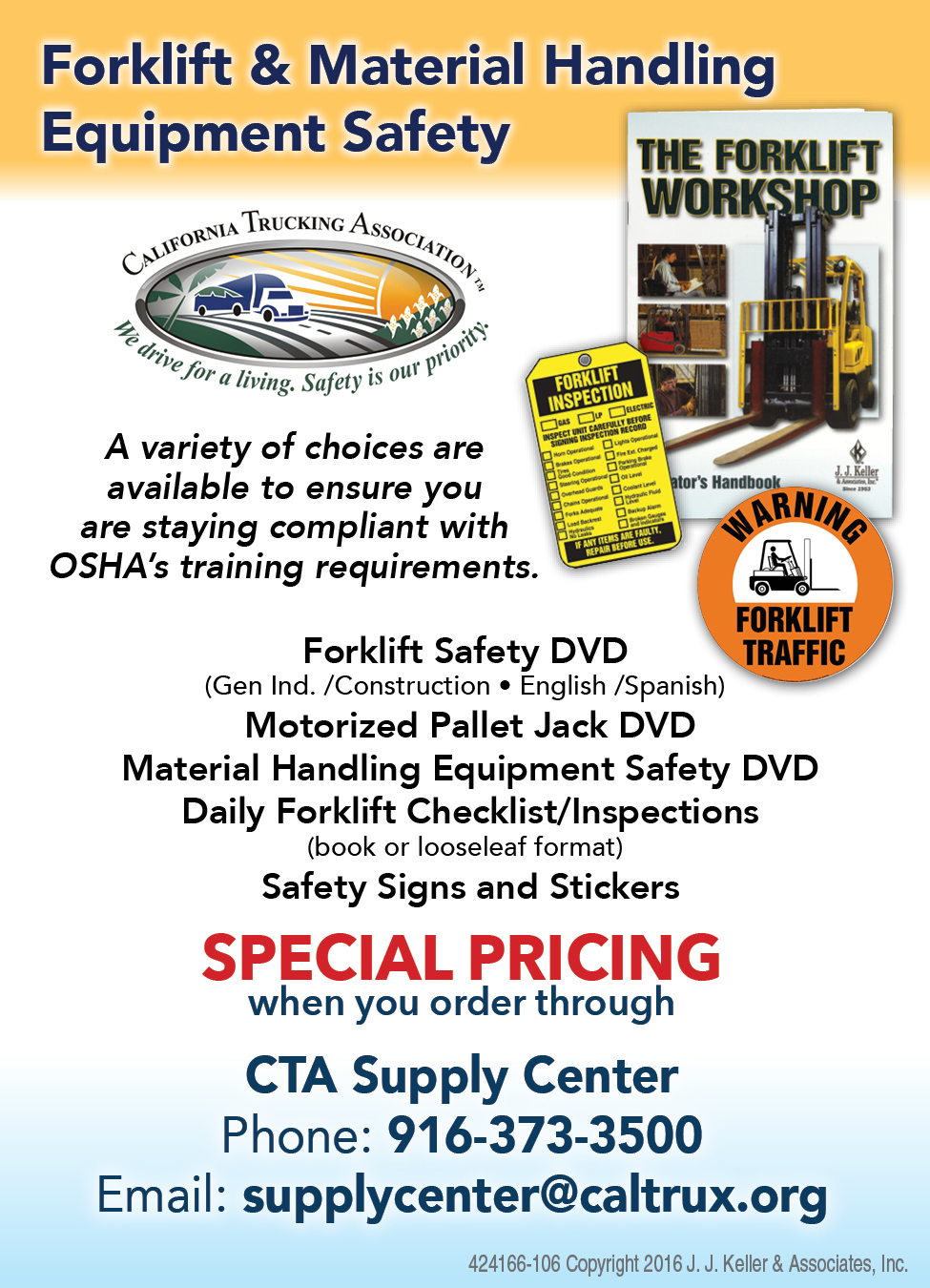 A variety of choices are available to ensure you are staying compliant with OSHA's training requirements. Special pricing is available when you order through the CTA Supply Center. Contact us at 916-373-3500 or supplycenter@caltrux.org for more information. Click here for flyer.