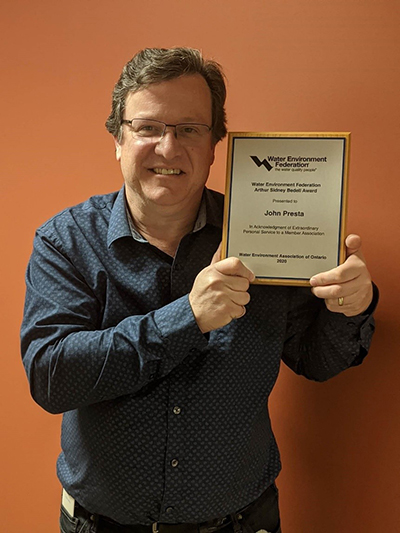 Longtime CWWA member, supporter and contributor John Presta was awarded the Arthur Sydney Bedell Award for extraordinary personal service to WEF by the Water Environment Association of Ontario.