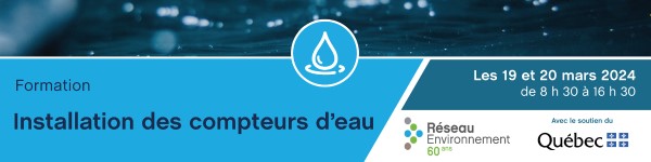 Santé Canada détermine les priorités en matière de produits chimiques dans l’eau potable tous les quatre à cinq ans. Le processus de hiérarchisation des substances chimiques tient compte de nombreuses sources d’information. 19 - 20 Mar 2024 Cette formation sur deux jours concerne l’installation de compteurs d’eau. Il est important de mettre en place ces instruments de mesure pour assurer un suivi et une gestion technique adéquate du réseau de distribution d’eau potable. Elle s’adresse principalement aux personnes qui sont impliquées dans le processus d’installation de compteurs d’eau. Cette formation est réalisée grâce à la contribution financière du Ministère des Affaires municipales et de l’Habitation (MAMH). 30 Avr 2024 - 02 Mai 2024 Cette formation sur deux jours concerne la stratégie d’intervention pour la réduction des pertes d’eau dans les réseaux d’eau potable. Elle vise à faire connaître les enjeux liés aux pertes d’eau potable dans les municipalités du Québec, mais aussi à faire connaître les outils et les techniques pour assurer une meilleure gestion et distribution d’eau potable au Québec. Elle s’adresse tant aux ingénieures et ingénieurs, aux opératrices et opérateurs en eau potable et usées, aux personnels techniques, aux intervenantes et intervenants municipaux ainsi qu’aux gestionnaires. Elle cible également tout autre intervenant concerné par la Stratégie québécoise d’économie d’eau potable au sein de leur municipalité. Cette formation est réalisée grâce à la contribution financière du ministère des Affaires municipales et de l’Habitation (MAMH). L’évènement a un nombre des places limité ! |
