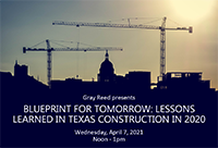 Join us for this webinar, "Blueprint for Tomorrow: Lessons Learned in Texas Construction in 2020," presented by Gray Reed construction law attorneys, where we will uncover the lessons learned in 2020 and what you can do to safeguard your business for the future.