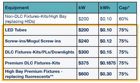 *Incentives do not apply to direct install lighting projects and grow lighting projects.