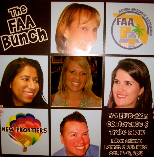 Everyone remembers the iconic opening of each episode of the Brady Bunch where the show pictured the cast smiling and looking at each other within squares. So ... the staff of the Florida Apartment Association replicated them. Marjorie Cook, our Executive Vice President, on the top; Rona Long, our Bookkeeper and Leasing Administrator, on the left; Laura Heiselman, our Government Affairs Director, on the right; and Ralph Robinson, CMP, the Director of Meetings & Affiliate Relations, looking up from the bottom. There was one face missing in the center, though, and that represented YOU, the member of our North Central Florida Apartment Association.