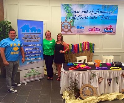 | Josh Gold, FAA Executive Vice President, visits the BCMHA registration table with Annika Cline and Danielle Dauphin. Cline is President of BCMHA and Community Manager at Edgewater Crossings. Dauphin is Treasurer of BCMHA and a leasing agent at Edwater Crossings. |