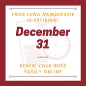 Your invaluable FEWA membership expires December 31! Don’t let your benefits lapse – invest in yourself and your career and renew today for continued access to discounted member rates for chapter meetings and the national conference, free educational webinars, certification, the online directory, peer networking opportunities and much more. Click here to renew online or follow the link below for more member benefits and information on how to easily renew your membership and categories online.