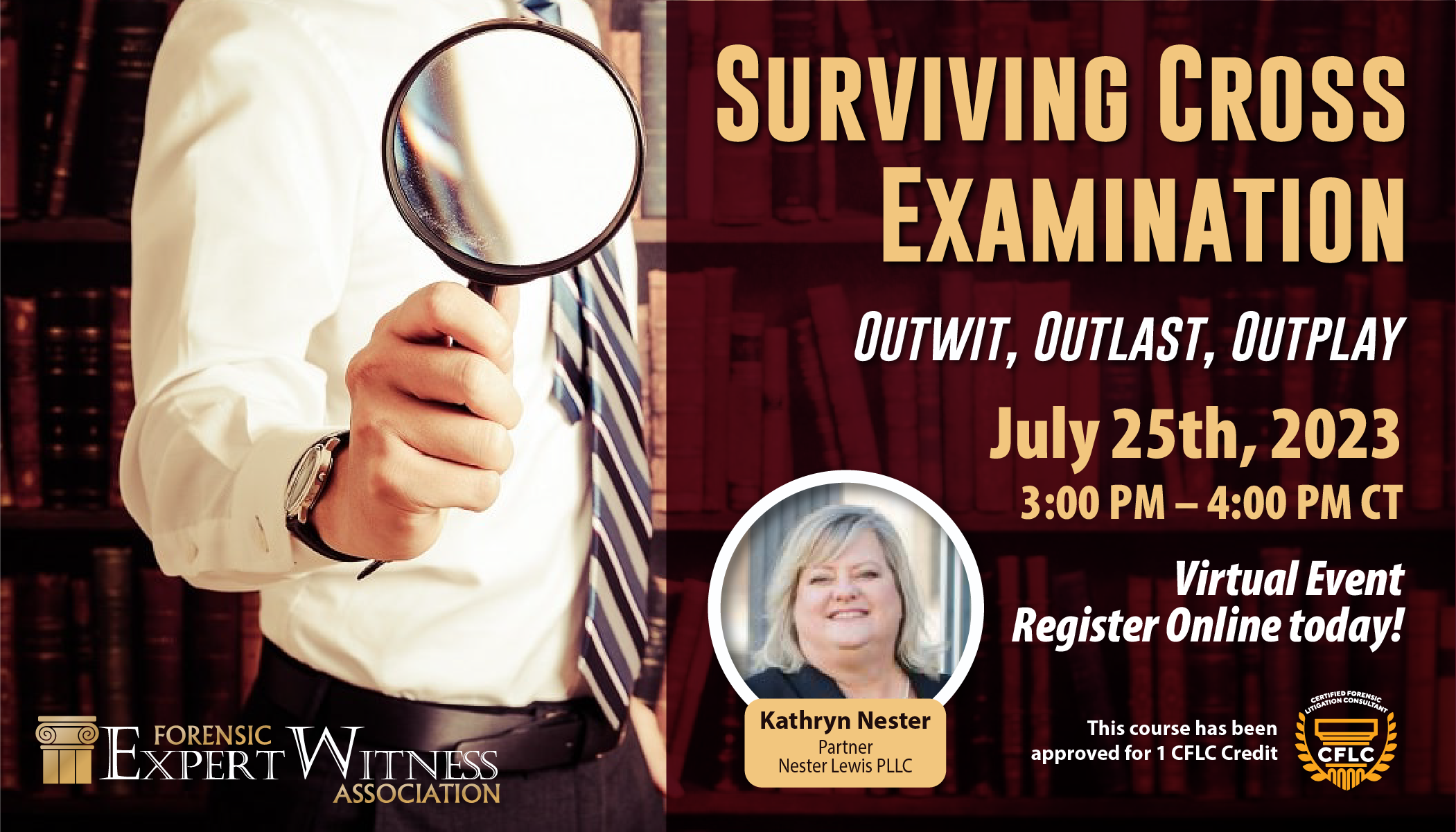 Date: July 25 at 3:00 p.m. CT Speaker: Kathryn Nestor, Esq. Attendees will learn the tricks and techniques used by experienced opposing counsel to trip them up during testimony, as well as how to anticipate, recognize, and avoid them. Learn to be the expert with the credibility and testimony that fact finders trust and understand. In this webinar, you will learn: