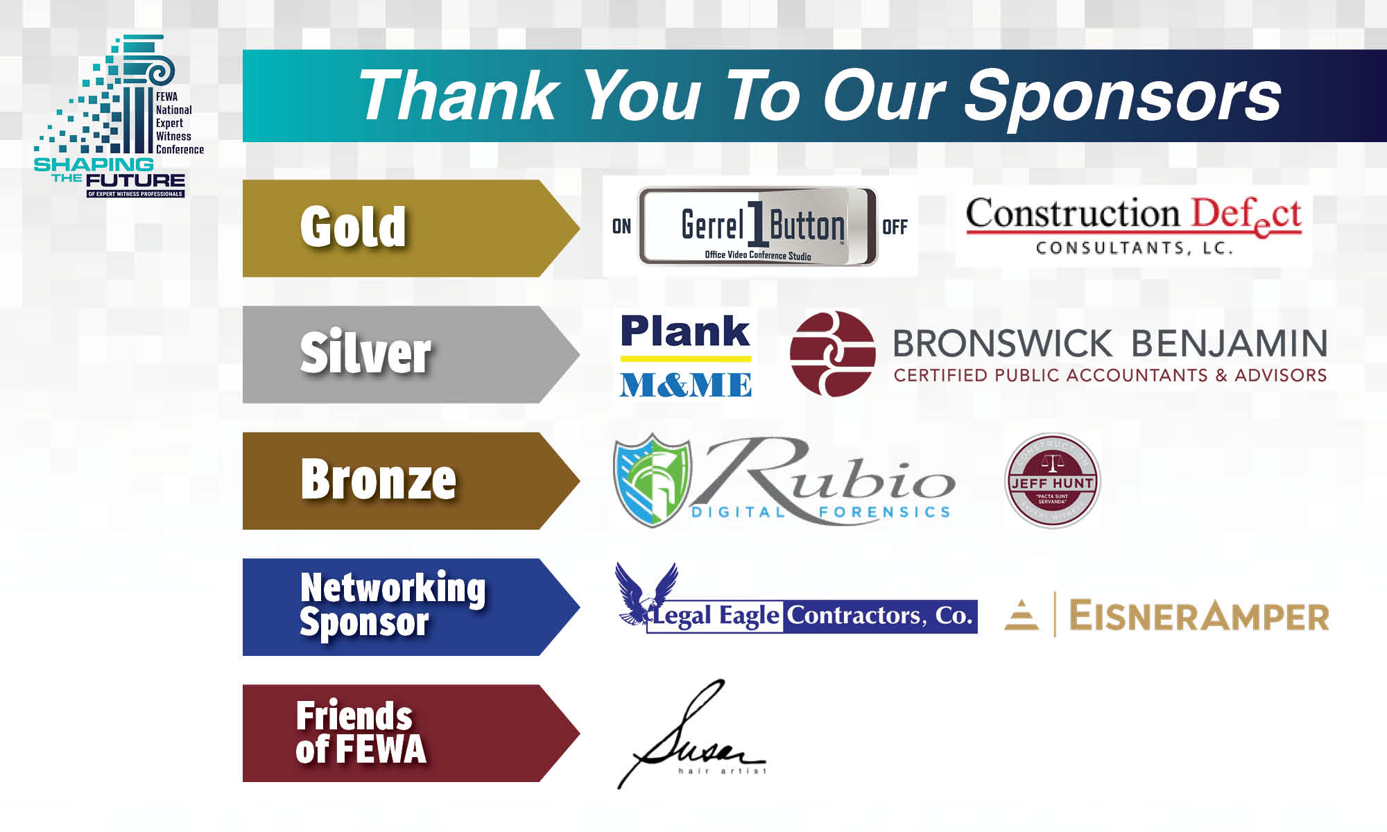 Did you attend the FEWA National Conference or the FEWA Expert Summit? Conference and Summit attendees earned up to six educational credits for each event towards the Certified Forensic Litigation Consultant (CFLC) credential. FEWA Professional and Professional Consulting members are eligible to apply for the CFLC. Do you qualify for the CFLC? Learn more about the application requirements. |