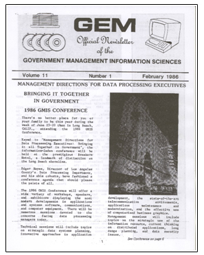 1986 was when I first became aware of GMIS. Oddly enough, the oldest copy of the GEM Newsletter in our website archive happens to be the February, 1986 issue. Do you recognize the equipment in the masthead? Disk packs and magnetic tape reels may not be familiar. How about cathode ray tubes (CRT’s)?