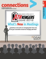 The digital edition of the Spring 2016 issue of GSAE's connections is now available online. In this issue, we take a look at at how tradeshows and events are changing and how associations should be changing along with them. Thank you to the advertisers who help support connections. Start reading this issue now!