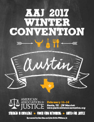 Join the American Association for Justice at their Winter Conference Feb. 11-14 in Austin, Texas. With more than 200 events and specialized topics on 10 cutting-edge CLE programs, the AAJ Winter Conference is sure to have something for everyone!