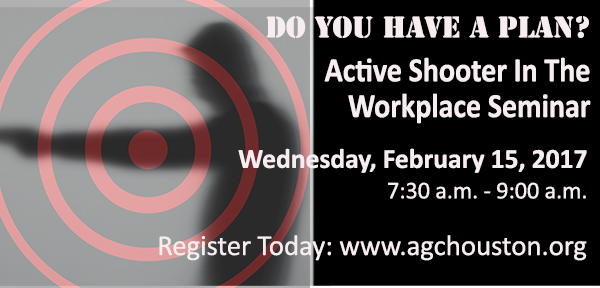 RESCHEDULED from January 19, 2017. This seminar is designed to teach how to significantly increase your odds of surviving an active shooter or terrorist attack. Make sure your company has an action plan! Register today and click here for details.