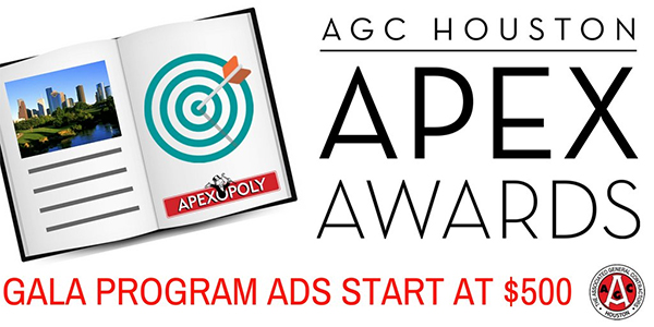 On September 22, 2018, we will be recognizing some of our members' finest contributions to the greater Houston area at the APEX Gala Awards. I hope you will help us Celebrate Construction From The Ground Up and join the A/E/C industry as it comes together that evening at the Houstonian. For tickets and sponsorship information, please click here.