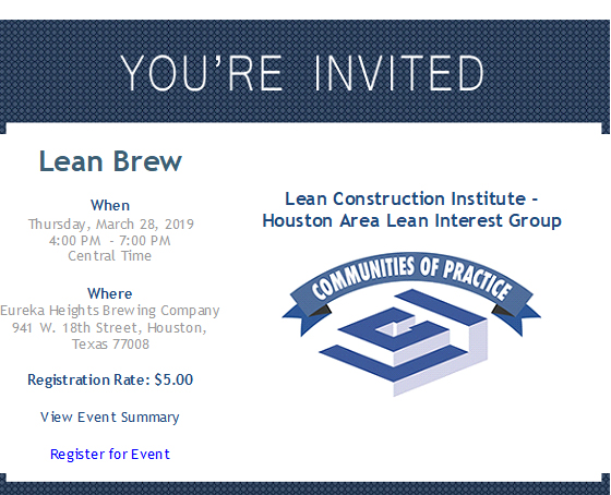 Friday, March 29 — AGC Houston Safety Committee Meeting: 7:15 - 9 a.m. Contact Kim Mason for details. ALL WELCOME!