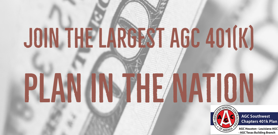 Join the largest AGC 401(k) plan in the nation with more than $350M in assets AGC Houston and the Louisiana AGC are excited to announce the addition of the AGC Texas Building Branch Chapter as a sponsor of the AGC Southwest Chapters 401(k) Plan. With the unanimous assenting vote of the plan’s Advisory Committee, TBB becomes the third sponsor of the plan, effective July 9, 2019. Now offering all Texas Building AGC member firms a low-cost simplified Multi-Employer Plan (with no employer fees, Trustee liability, fiduciary responsibilities nor audits. Resources