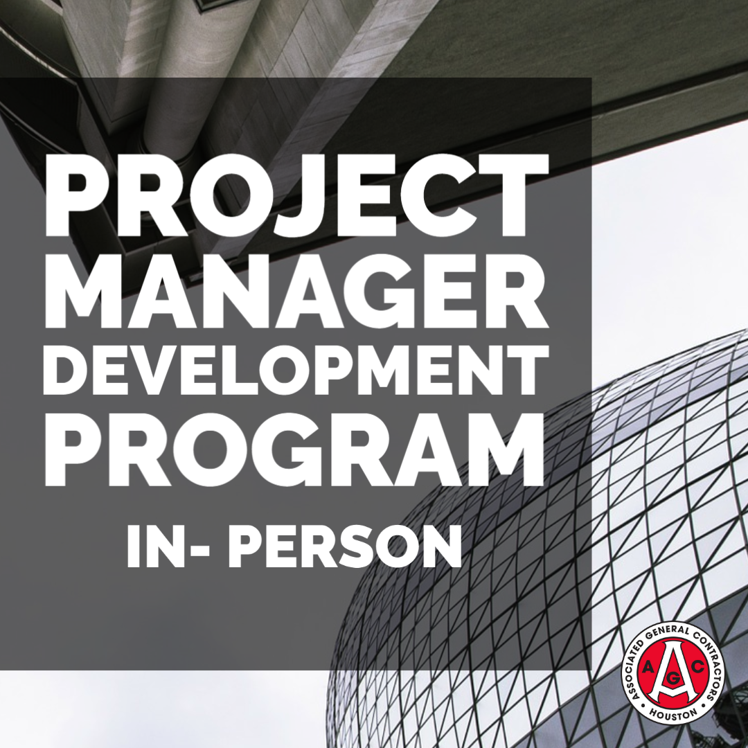 UPCOMING EDUCATION & PROFESSIONAL DEVELOPMENT PROGRAMSYou're not going to want to miss out on AGC Houston's professional development programs! These courses are intended for the following construction professionals: Superintendents, Project Engineers, Project Managers, Accounting Staff, Project Support Staff, Project Executives, Business Development, Technology Support Staff and more!