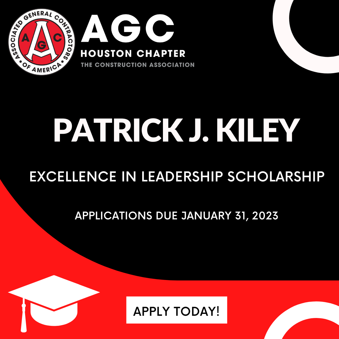 AGC Houston will be awarding Patrick J. Kiley Excellence in Leadership scholarships to college-bound and university students who are majoring in a construction-related discipline.