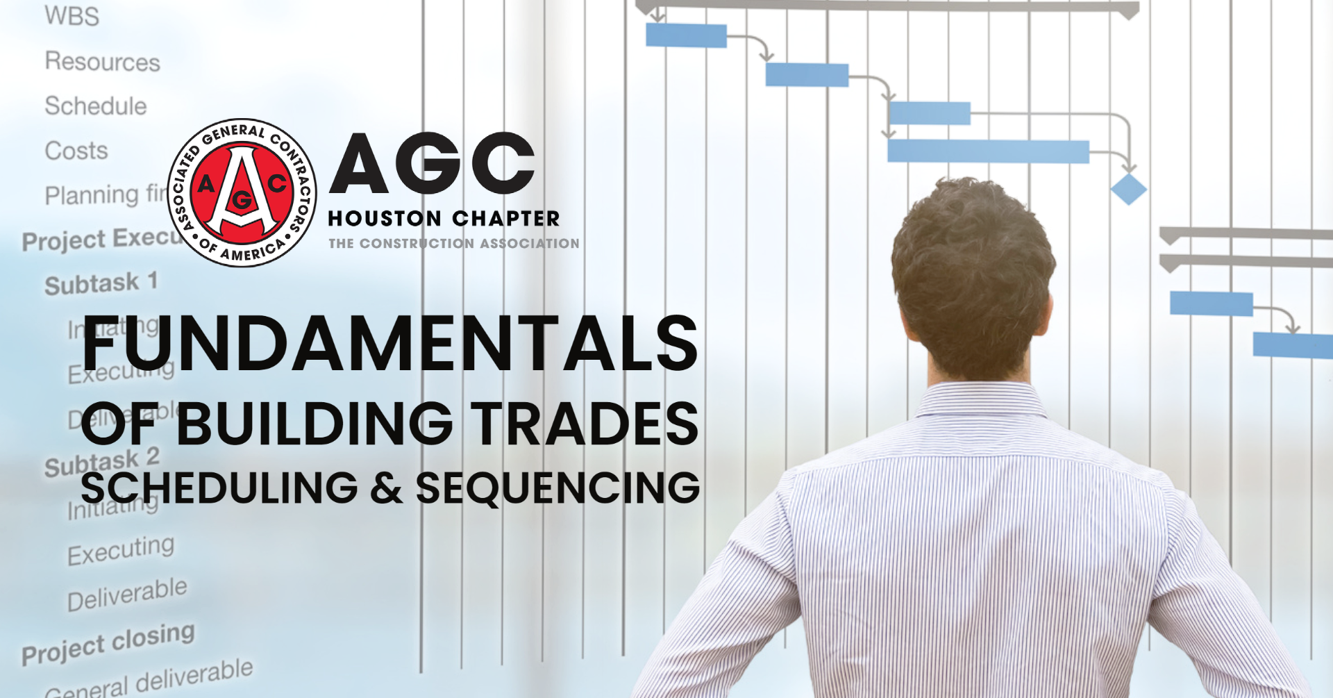 Click HERE to register today! Unlocking the Key to Efficient Construction: Mastering Scheduling and Sequencing with AGC Houston on July 12th!The Fundamentals of Building Trades – Scheduling and Sequencing led by Kendall Pouland of Build Better Ways, is an in-person class designed to provide you with practical tools and techniques for optimizing project scheduling and sequencing, including the latest trends and best practices in the commercial construction industry. Program Objectives: