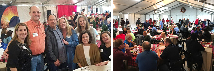 MLN Company celebrated the holiday season with an annual party, complete with food, DJ, casino tables, giveaways and photo booth as a means to thank its employees. The party featured MLN Company President Murray Neal's famous gumbo, and employees Chris Schlag and Robert Whitman who cooked an assortment of pork tenderloins, barbecue brisket and ribs. While side dishes and desserts were catered, MLN's service department cooked shrimp. According to Clarissa Lang, MLN Company, "the Christmas celebrations started with Murray cooking up food for his employees from day one. As the years went on and the company grew, it's become a party of 400+." Besides employees, MLN Company invites industry partners, clients, family and friends. Pictured are MLN Company's Clarissa Lang, AGC Houston's Jerry Nevlud; Murray and Mindy Neal; and AGC Houston's Catherine Bezman, Charlene Anthony, and Anavell Trevino.