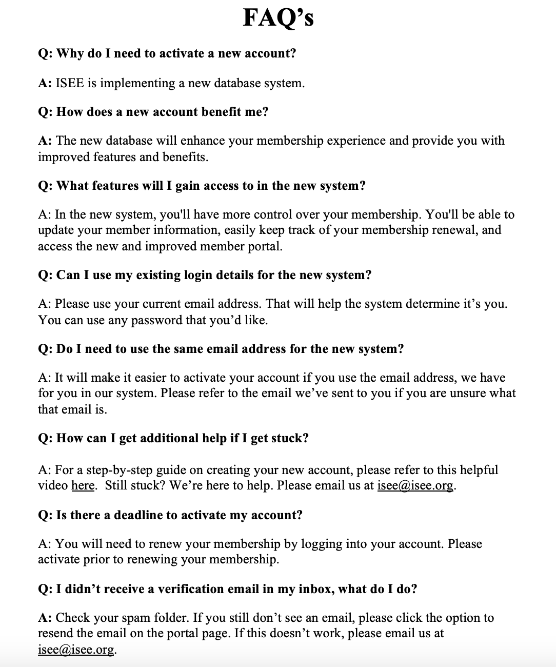 ISEE is happy to introduce our new Member Portal. All members will need to log into the new Member Portal to activate their account.