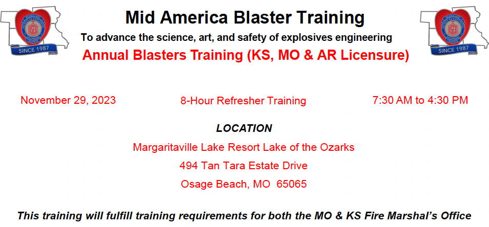 Heartland Chapter Mid America Blasters Training November 29, 2023 Osage Beach, Missouri, USA www.heartlandblast.org