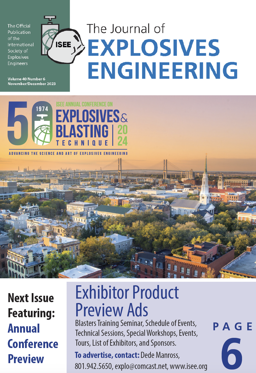 And much more… Join ISEE and receive your complimentary subscription of both the print and digital edition of the Journal of Explosives Engineering. Contact ISEE's membership team at isee@isee.org for more information.