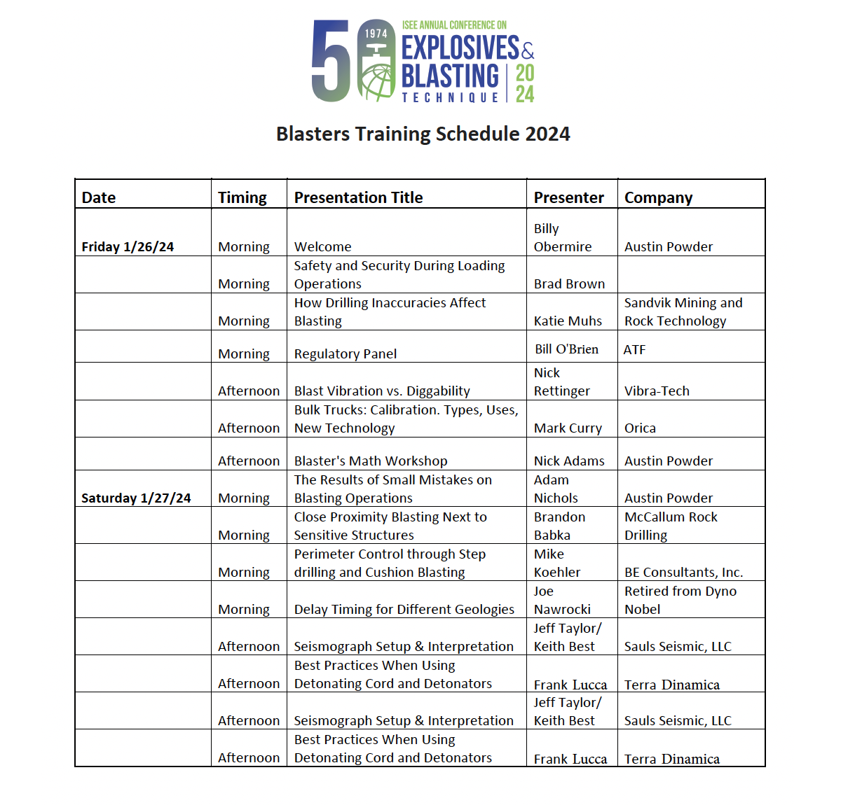 ISEE 50th Annual Conference on Explosives and Blasting Techniques January 24 - 27, 2024 Savannah, Georgia, USA www.isee.org