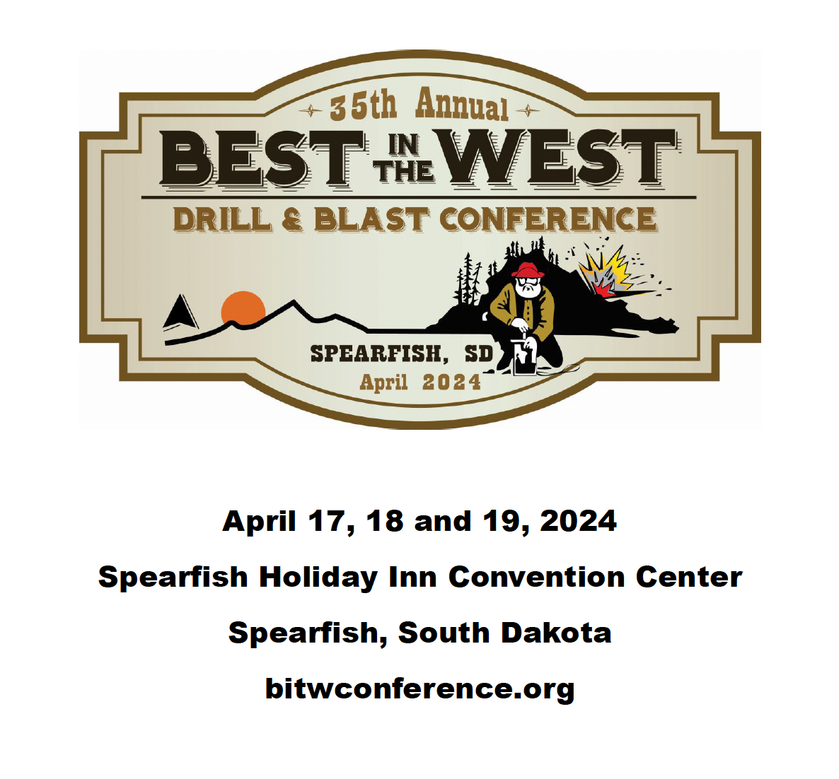 35th Annual Best in the West Drill and Blast Conference April 17-19, 2024 Spearfish Holiday Inn Convention Center Spearfish, South Dakota, USA https://bitwconference.org