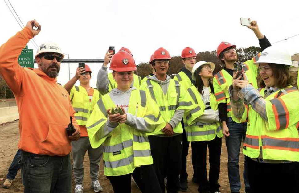 The site is part of a four-and-a-half year highway reconstruction project being pitched Wednesday to the East Lyme High School engineering class as a $148 million project generating more than $30 million annually. It's overseen by Plainville-based general contractor Manafort Brothers of Plainville and engineering firm GM2 of Glastonbury.