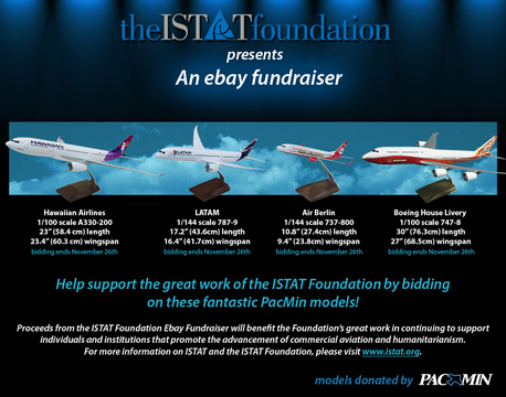 Support the programs of the ISTAT Foundation by bidding on rare PacMin models. Click here to access the PacMin eBay auction page. The auction closes on 26 November. Thank you to Pacmin for their donation and support of the ISTAT Foundation!