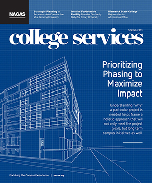 Prioritizing Phasing to Maximize Impact. Understanding "why" a particular project is needed helps frame a holistic approach that will not only meet the project goals, but long term campus initiatives as well. Are you itching to share a new, innovative idea while helping to bolster your resume? Consider submitting an article to College Services! Email abby.short@nacas.org to learn more. We are now accepting pitches for the fall issue, which will focus on Student Success and Keeping "It" On Campus.