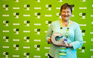 NACAS is proud to announce the 2019 winner of the Robert F. Newton Award for Distinguished Service; Jean Kwaterski, CASP, Executive Director of Campus Life, University of Wisconsin – Oshkosh. The award was given at the C3X 2019 Annual Conference and Expo in Phoenix, Arizona. "I have had the privilege of knowing Jean for a number of years and she is most deserving of the Newton Award," said Kelsey Harmon Finn, NACAS CEO. "From her time on the Central Regional Board of Directors to her years on the NACAS National Board in the presidential track, she has shown care and concern for the overall organization and the individuals it serves. She is compassionate, thorough, and thoughtful in her work and relationships. Please join me in congratulating Jean with this honor."