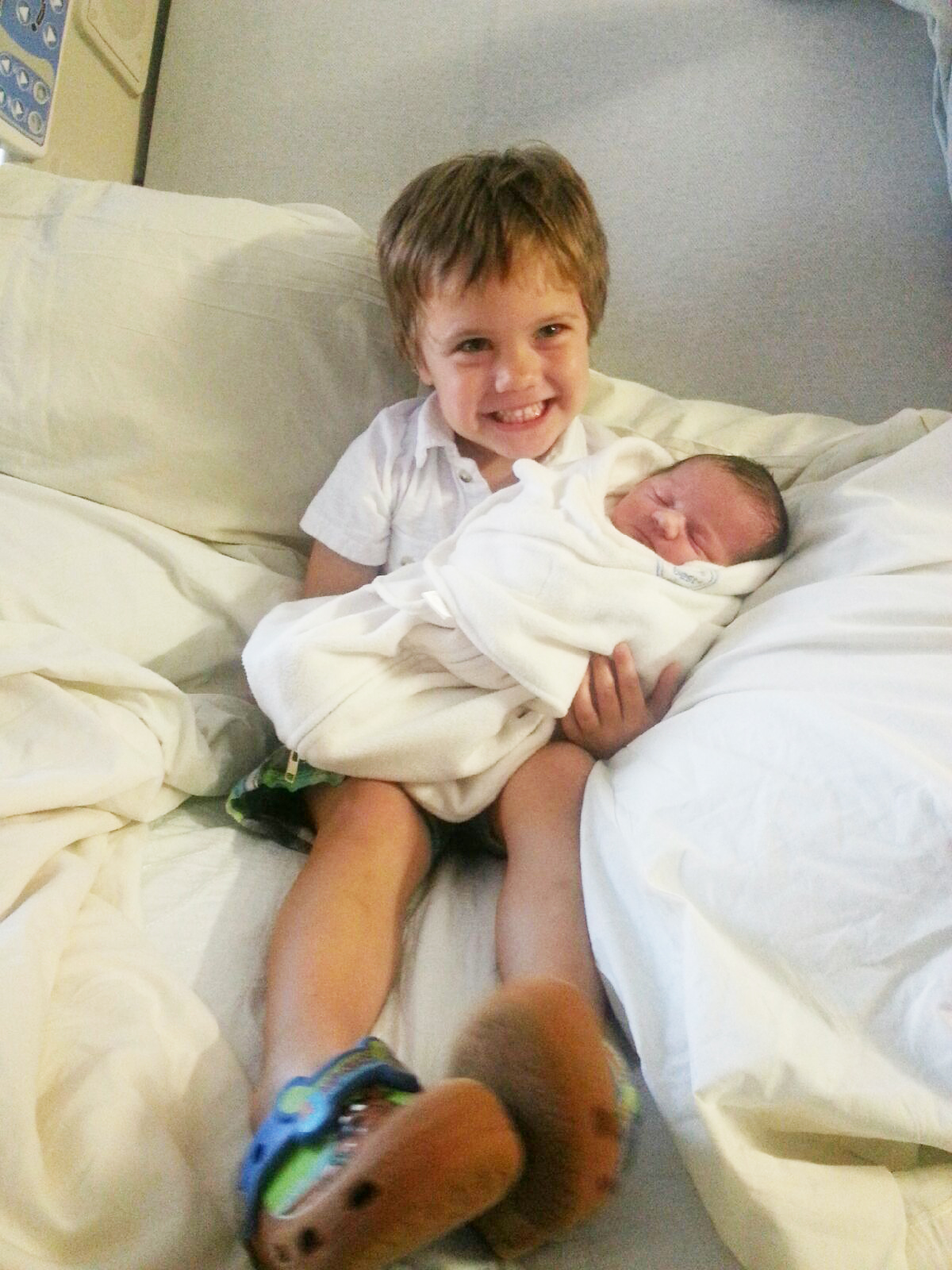 Sarah Morrissey and her husband, Kyle, welcomed Reagan Mae on Sunday, August 31, 2014, at 4:14 a.m. She tipped the scales at 7 lbs., 5.9 oz., and 18 inches. Because she was four weeks early, Reagan spent four hours in the NICU and then was reunited with Mommy and Daddy. The family was released from the hospital on Monday, September 1. All are doing well. Photo shows big brother Connor (who turned 4 in July) cheesing with his new baby sister. Congrats to the Morrissey Family!