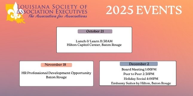 The Louisiana Society of Association Executives is THE association for association professionals. In support of our mission and vision, LSAE provides members with many benefits of membership.