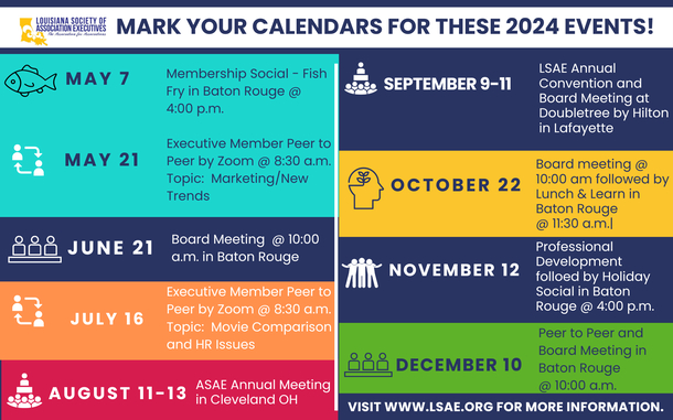 The Louisiana Society of Association Executives is THE association for association professionals. In support of our mission and vision, LSAE provides members with many benefits of membership.