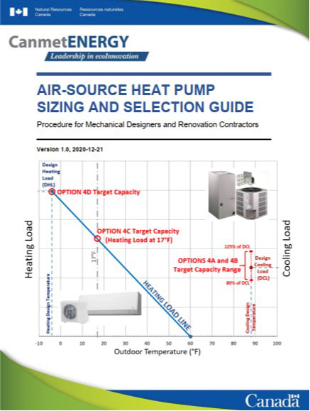 Natural Resources Canada has developed a package of materials related to air source heat pump (ASHP) sizing and selection, intended for use by mechanical system designers and renovation contractors. These materials are designed to assist with sizing and selecting ASHPs for Canadian climates, in both new and existing (retrofit) residential applications.