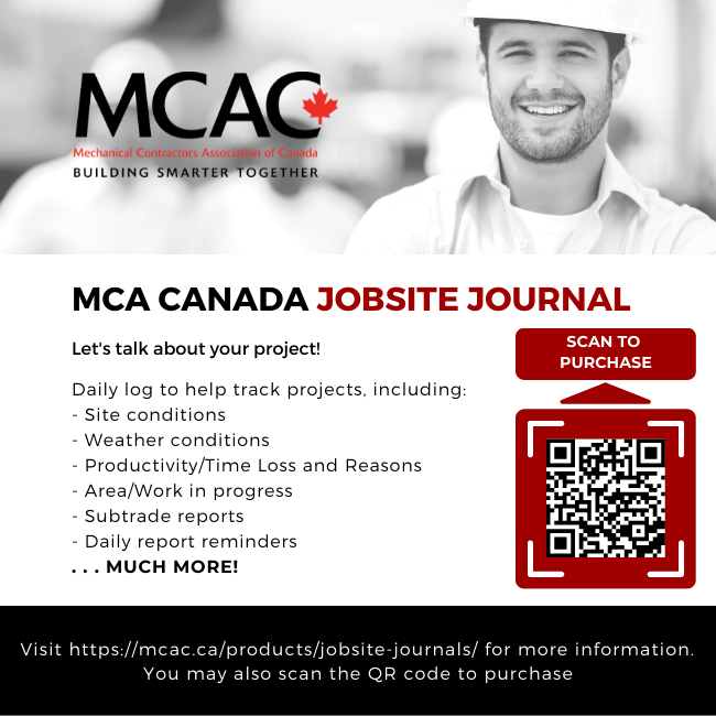 The MCA Canada Jobsite Journal is a daily log to help track projects, including: