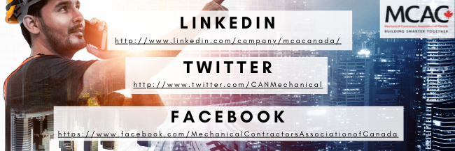 Follow our social media platforms to keep up to date with what's happening with MCA Canada and Women in Mechanical Construction. Don't forget to @ us if you would like us to share your post! MCA Canada social media