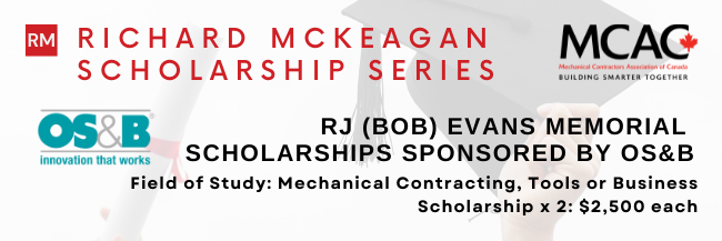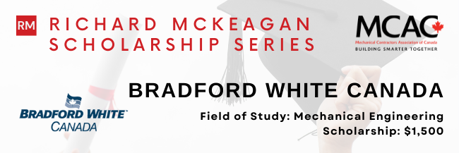 The Mechanical Contractors Association of Canada (MCAC) is now accepting applications for the 2022 Richard McKeagan Scholarship Series, which will award more than $20,000 to deserving students across Canada studying in the mechanical contracting and mechanical engineering fields.