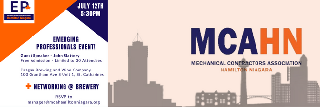 Networking, Training and Mentorship for Emerging Professionals in the Mechanical Contracting Industry. With guest speaker John Slattery. Admission is free.