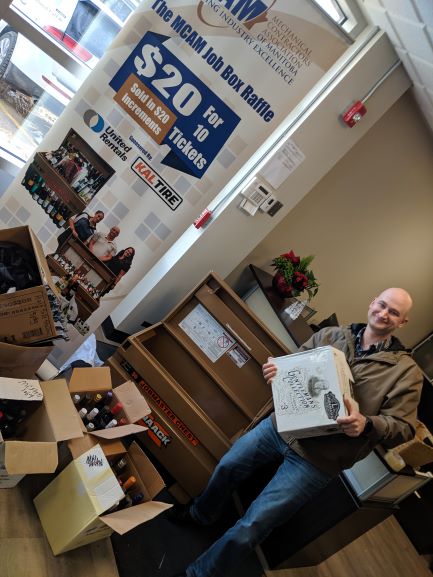 MCAM hosted their 2019 Holiday Reception in their MCAM Boardroom and Educational Center on December 5. Featured in this photo is winner of the Job Box Raffle, Charles from Westwood Mechanical.
