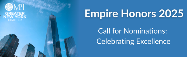 Dear MPI Greater New York Community, The excitement is building! Following the rebrand of our annual awards program, we are thrilled to officially open nominations for the Celebration of Excellence: MPI Greater New York Empire Honors. This is your opportunity to champion the colleagues, partners, and leaders whose dedication, innovation, and achievements elevated our industry in the past year. Who inspires you? Who is driving the future of events? Why Nominate? We are seeking nominations across key areas including: Individual Excellence: Recognizing outstanding event professionals (Planners, Suppliers, Young Professionals). How to Submit Your Nomination Review the Categories and Complete this Form sharing a brief yet compelling summary of why your nominee(s) deserves the honor. The deadline for submissions is December 1, 2025Don’t miss the chance to give credit where credit is due. Nominate a champion today and help us Celebrate Excellence! We look forward to reviewing your submissions and celebrating our 2025 honorees in January 2026. Pre-Con