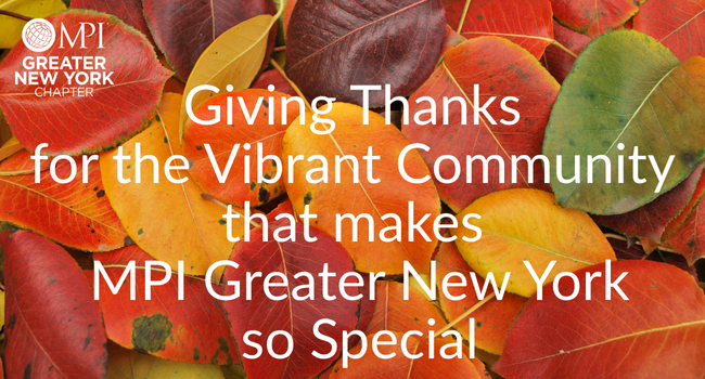 Dear MPI Greater New York Chapter Members, November is here—and with it, a season of gratitude, reflection, and connection. As the city begins to twinkle with early holiday lights and we gather around tables with friends and family, it’s the perfect time to pause and give thanks for the vibrant community that makes MPIGNY so special. October in Review Honoring Our Veterans Looking Ahead Gratitude in Action As we give thanks this November, let’s also look ahead with optimism and purpose—continuing to uplift one another, support our community, and build meaningful connections that define the heart of MPIGNY. Wishing you and your loved ones a joyful, peaceful, and gratitude-filled Thanksgiving season.