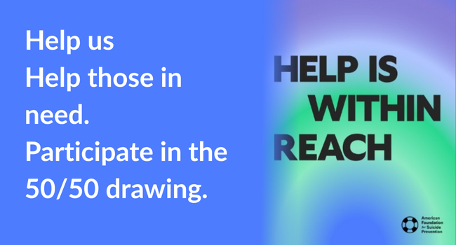 The American Foundation for Suicide Prevention (AFSP) is the leading nonprofit dedicated to saving lives and bringing hope to those affected by suicide. Make a donation to our 50/50 raffle for a chance at a cash prize and help us support this great cause. I'm Ready to Roll!