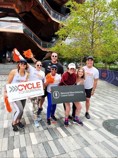 On a blustery and rainy Saturday, May 14, 2022, nine members of the MPIGNY community participated in the Cycle for Survival, raising money for Memorial Sloan Kettering Cancer Center. It was the first time in two years the race was held in it's original format and the first time ever outside. Fortunately a tent shielded riders from the elements, but the rain did not dampen the spirits of the many participants gathered on the plaza at Hudson Yards. The mood was joyful and celebratory, and at times emotional, as we heard from several survivors and families about MSK's cutting edge treatments that are saving lives and giving cancer patients a fighting chance to beat this disease.