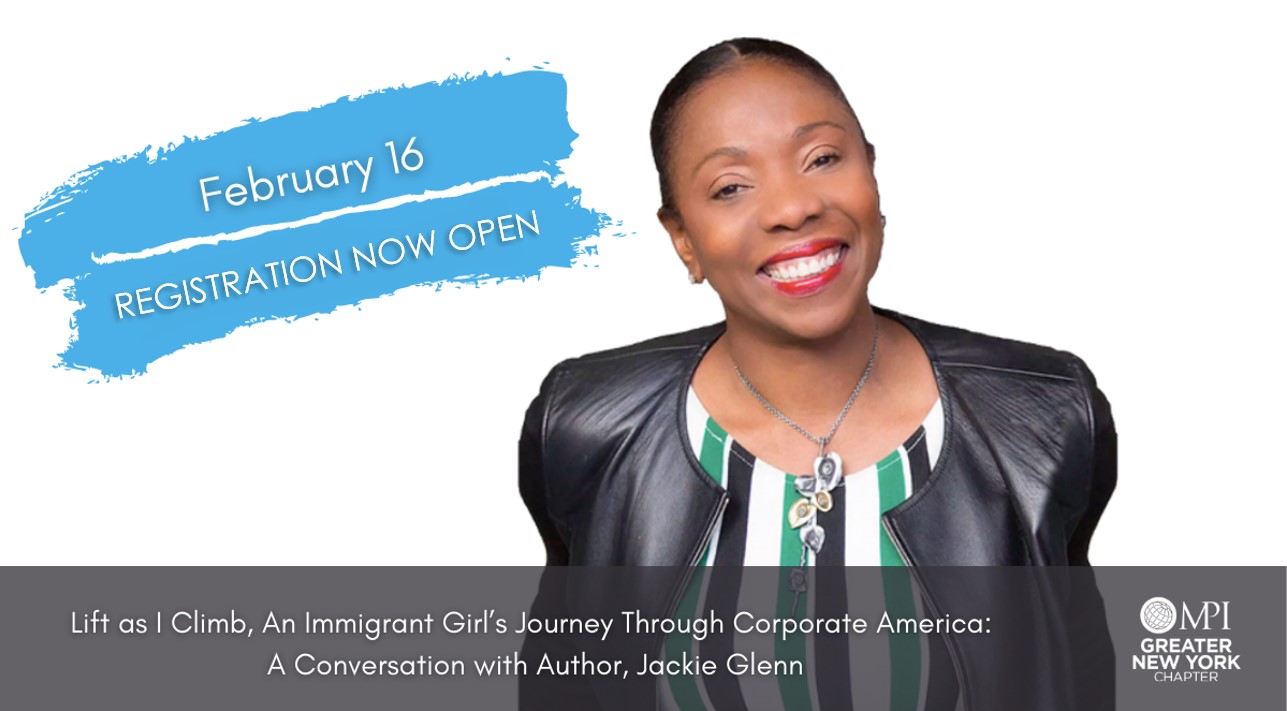 Just a few short days later, we are rolling right into our second education event of the year. On Tuesday, Feb. 16, "Lift As I Climb, An Immigrant Girl's Journey Through Corporate America: A Conversation with Author Jackie Glenn" will be a thought-provoking program focused on diversity and inclusion. As you know, last year we created the MPIGNY Diversity & Inclusion Committee to enhance our members’ overall experience. This initiative is a long-term commitment that we have made to help promote diversity, equity and inclusion throughout every facet of our chapter. We are fortunate to have Jackie leading this program, and we hope each one of you will be able to join us. Also, as we will continue to do for the foreseeable future, we are offering both programs on a complimentary basis to all meeting and hospitality professionals. The full details are outlined below.