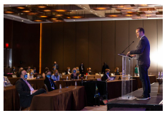 Smart Reg International Inc. signed on to provide touchless badges, PMSI gave away PPE kits and Scarborough & Tweed provided branded GMID2021NY face masks to wear during the event. The Conrad had hand sanitizer stations in key areas of the event space. The ballroom was set classroom-style with one chair per table, there were directional arrows and decals that clearly marked the entrance, exit and directional flow, and the space was cleaned and sealed in accordance with Hilton EventReady protocols.