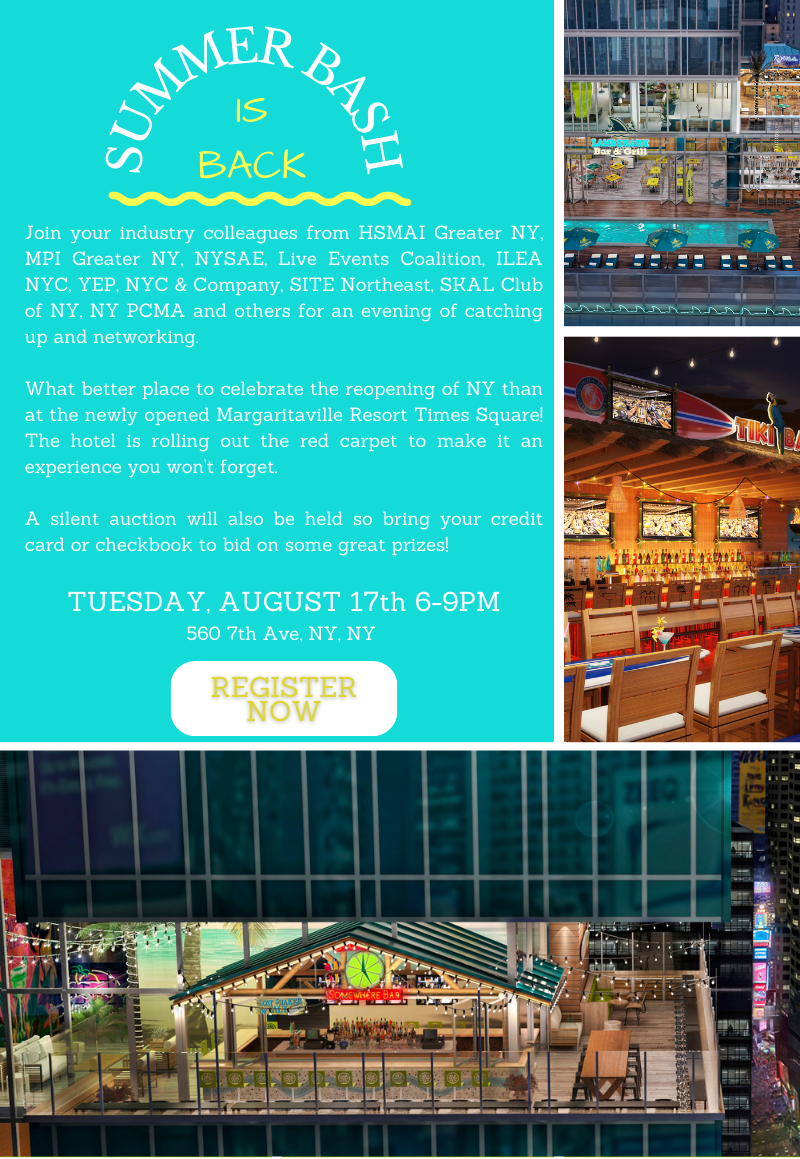 If you haven’t already, please plan on joining MPIGNY and members of most of the area’s travel industry associations at Summer Bash on August 17. The link to register is below. Not only will this be a fantastic night of networking, we will also be able to check out the brand new Margaritaville Hotel in Times Square.
