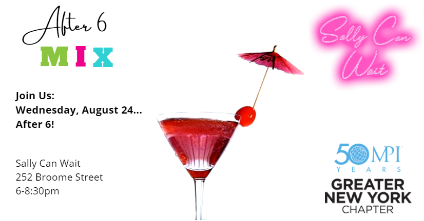 Join us for MPIGNY's signature Happy Hour, After Six Mix, Wednesday, August 24, 6-8:30 p.m., at Sally Can Wait, the Lower East Side's newest cocktail bar!