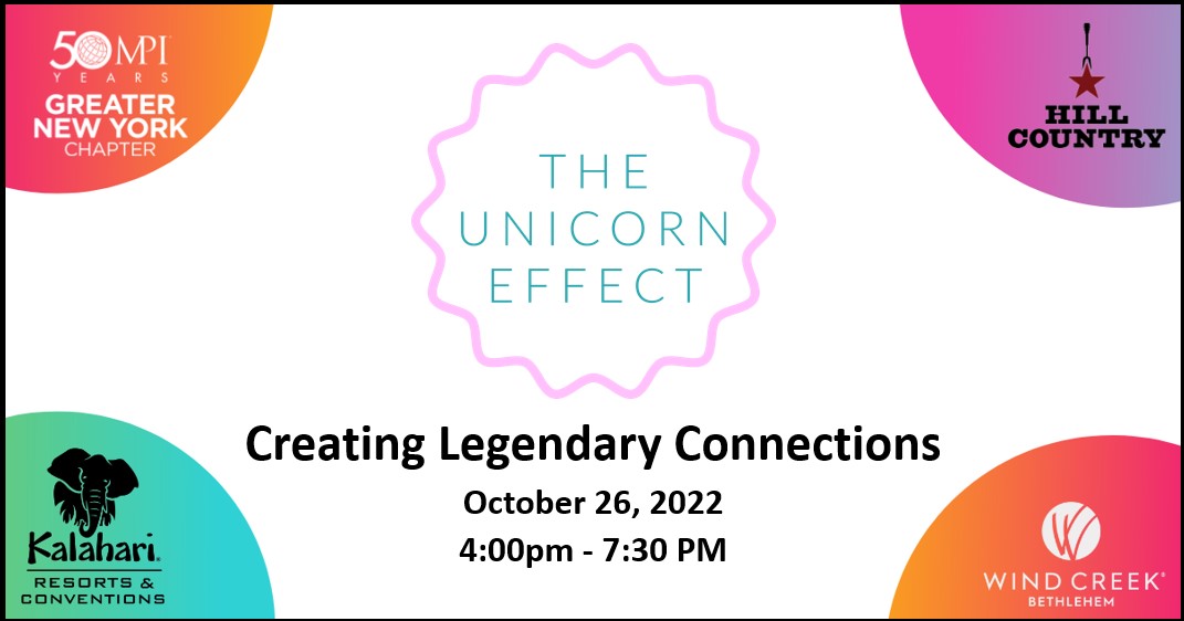 The October 26 education program “The Unicorn Effect: Creating Legendary Connections” featured an extraordinary speaker, Sean Bott, a renowned mentalist using his psychic entertainment skills to train us how to build relationships intentionally, one person at a time, with simple everyday methods that are often overlooked. To name one, a genuine compliment can short-circuit the “threat mode” when making new connections. He showed us how this simple act is key to both planners and suppliers to awaken our “people skills” that may have gone dormant during the pandemic.